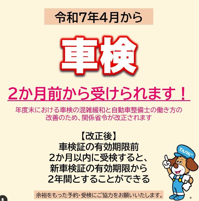 車検満了日の、「2か月前」から車検を受けても元々の満了日は変わらずに 車検更新できることになりました!