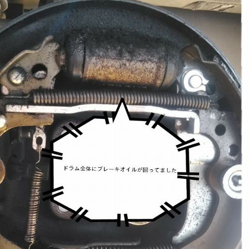 ライニングまでオイルがまわってしまっていました。ブレーキの点検は2年あけると長いと思いますので一年事の12ヶ月点検をおすすめします。