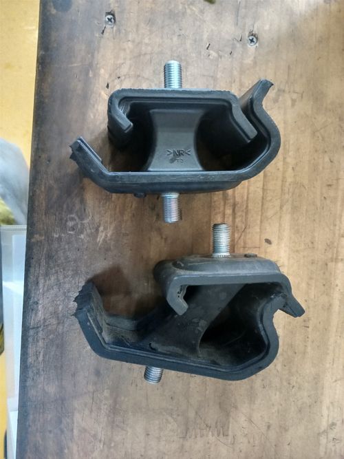 上が新品で下が車についていた物ですがかなり変形していました。 変形したマウントがエンジンに当たって後が出ていたようです。マウントを交換すると静かになりました。 ちょっと当てただけでも大事になっている時がもあるので下廻りを小突けてしまった時もハヤメノ点検をオススメします。 岡崎市で車検整備ならホリデー車検岡崎 くるまの元気屋