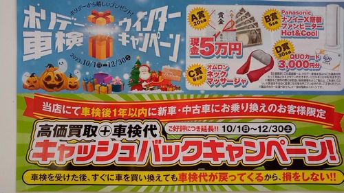 車検代キャッシュバックキャンペーンを行っています。